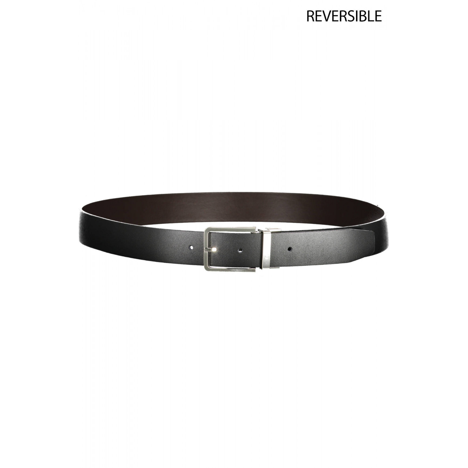CINTURA IN PELLE REVERSIBILE, NERO-MARRONE, FIBBIA IN METALLO, LOGO