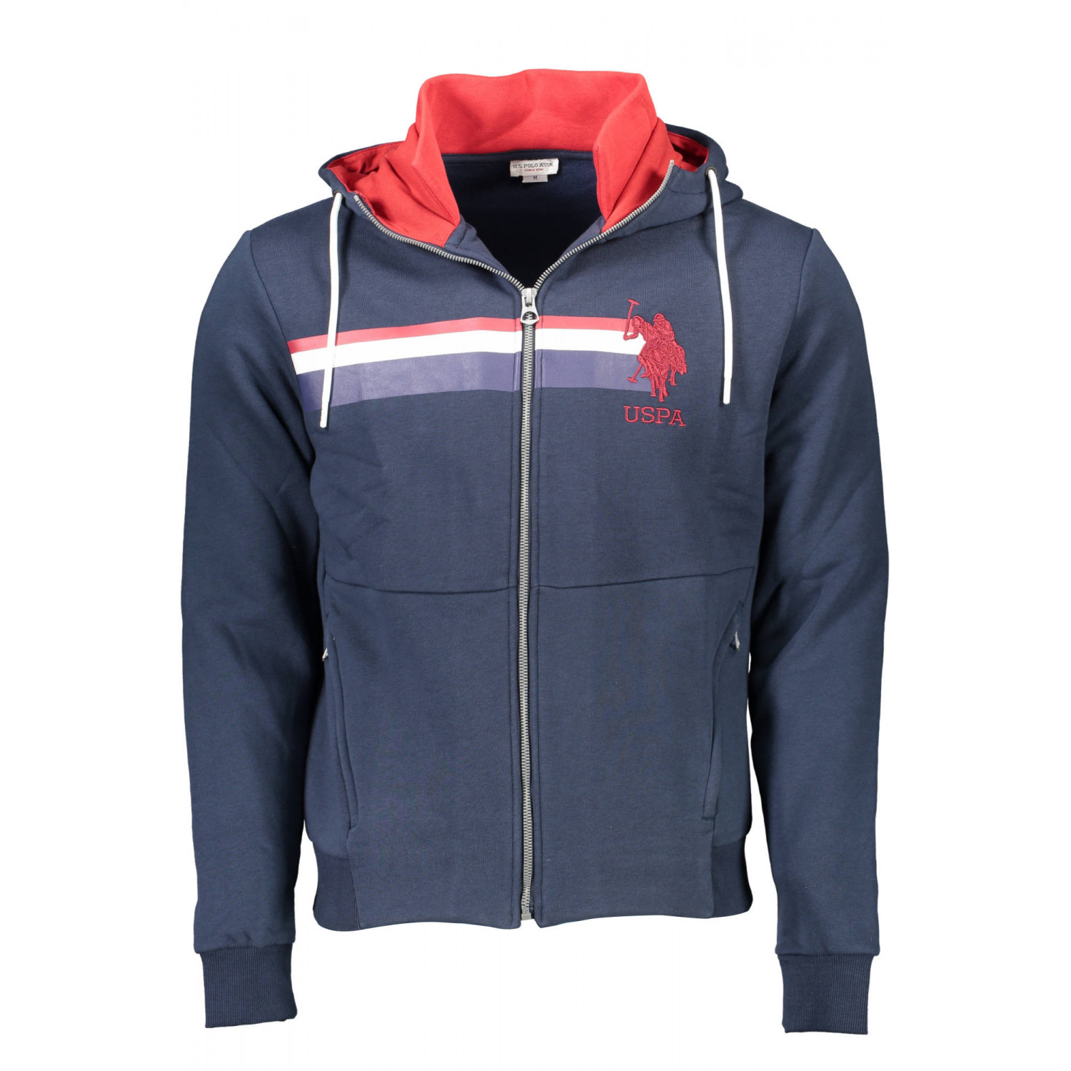 FELPA MANICHE LUNGHE CON CAPPUCCIO, 2 TASCHE, DETTAGLI A CONTRASTO, RICAMO, ZIP, LOGO