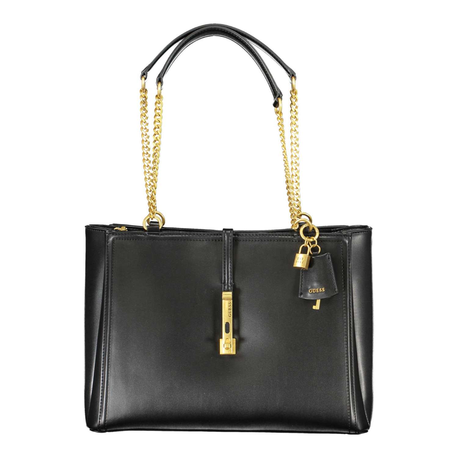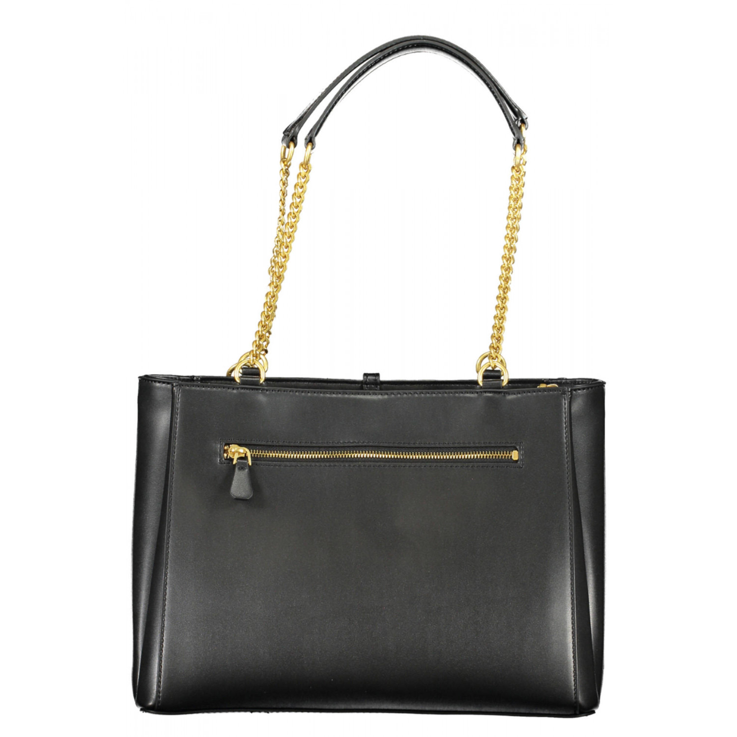 BORSA 2 MANICI IN CATENA, 1 TASCA ESTERNA, 3 SCOMPARTI, 1 TASCA INTERNA, SPAZI INTERNI PORTATELEFONO, DETTAGLI A CONTRASTO, CHIUSURA CON ZIP E A GIRELLO, LOGO