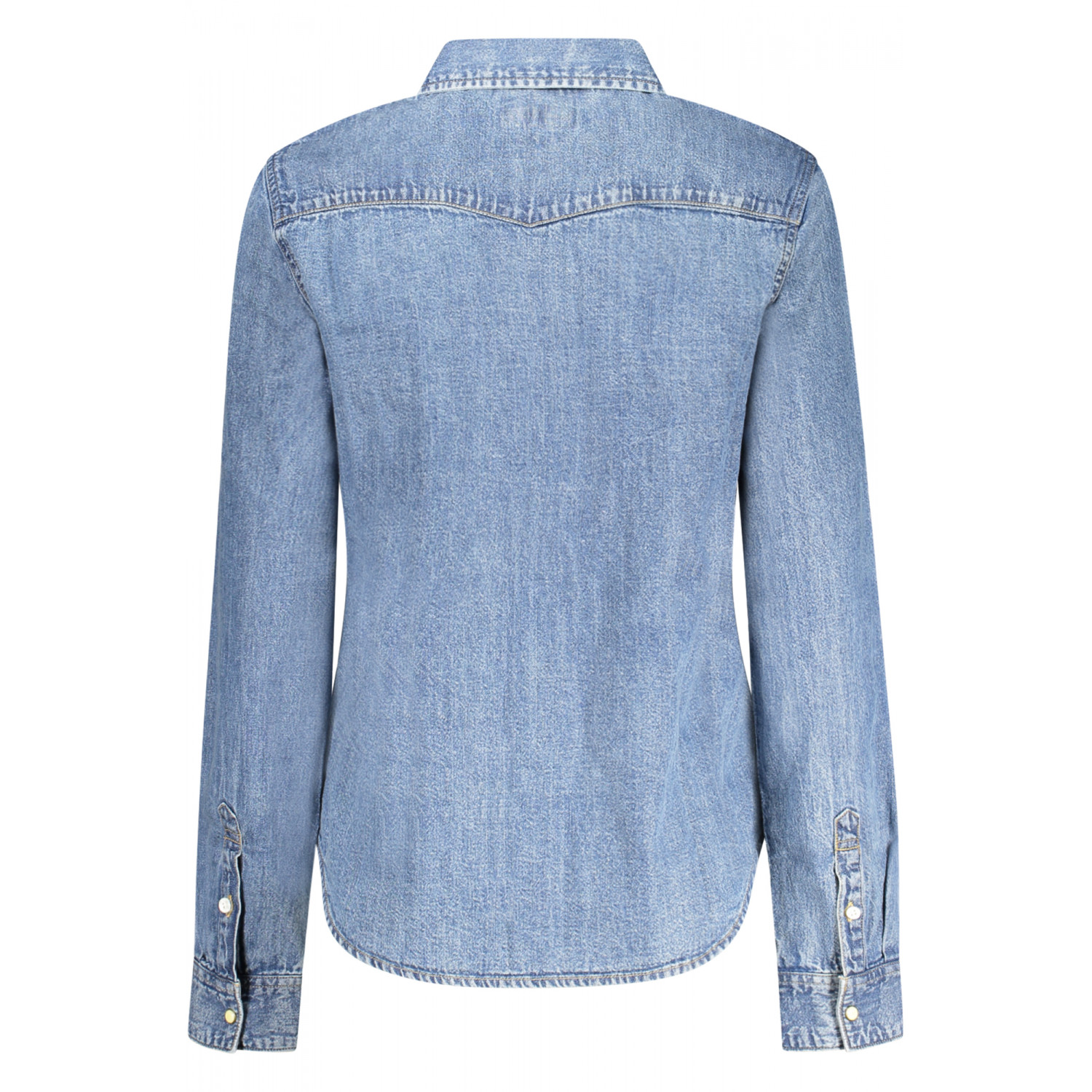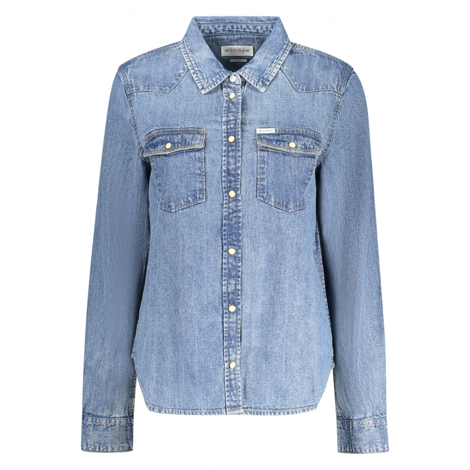 CAMICIA MANICHE LUNGHE IN JEANS, SLIM FIT, COLLO ALL'ITALIANA, POLSINI 1 BOTTONE, 2 TASCHINI, AUTOMATICI, LOGO