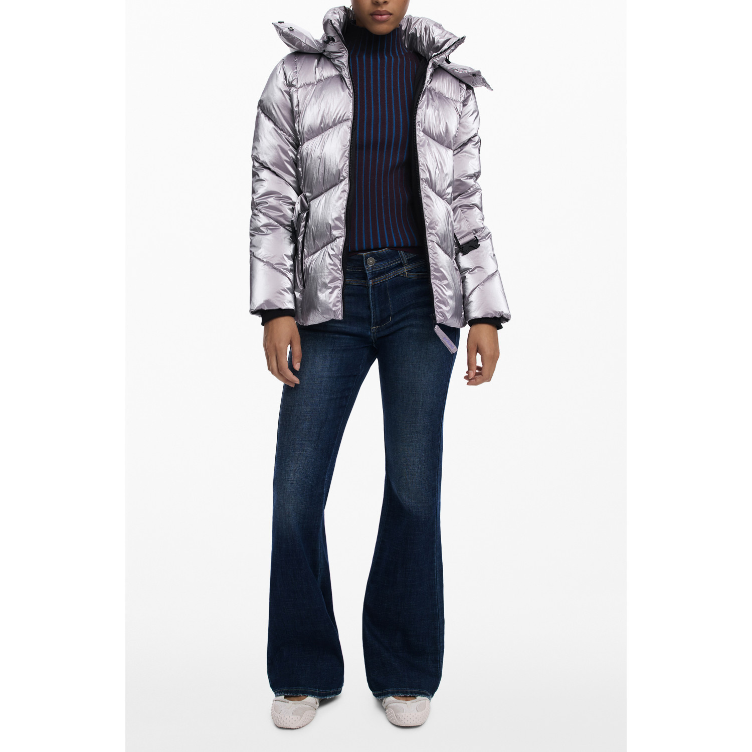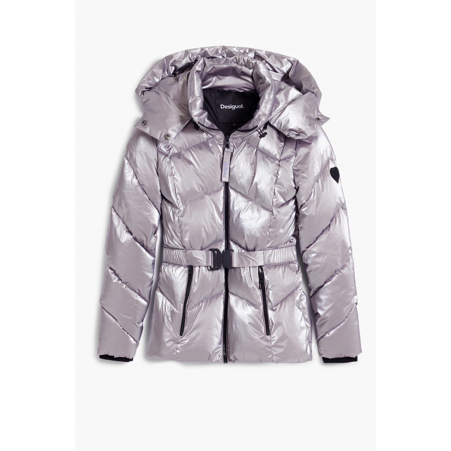 GIUBBOTTO MANICHE LUNGHE METALIC CON CAPPUCCIO REMOVIBILE, 2 TASCHE ESTERNE, CINTURA IN VITA CON CLIP, ZIP, LOGO