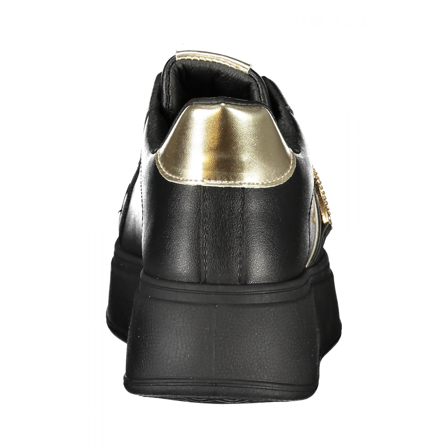 CALZATURA SPORTIVA CON LACCI, DETTAGLI A CONTRASTO IN ORO, APPLICAZIONE STRASS, STAMPA, PLATEAU 5 CM, LOGO