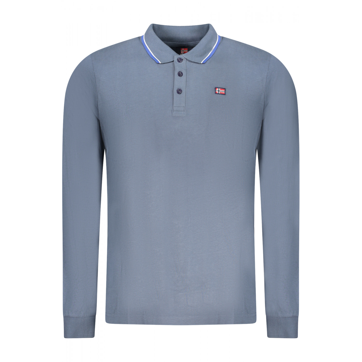 POLO MANICHE LUNGHE, 3 BOTTONI, DETTAGLI A CONTRASTO, RICAMO, LOGO