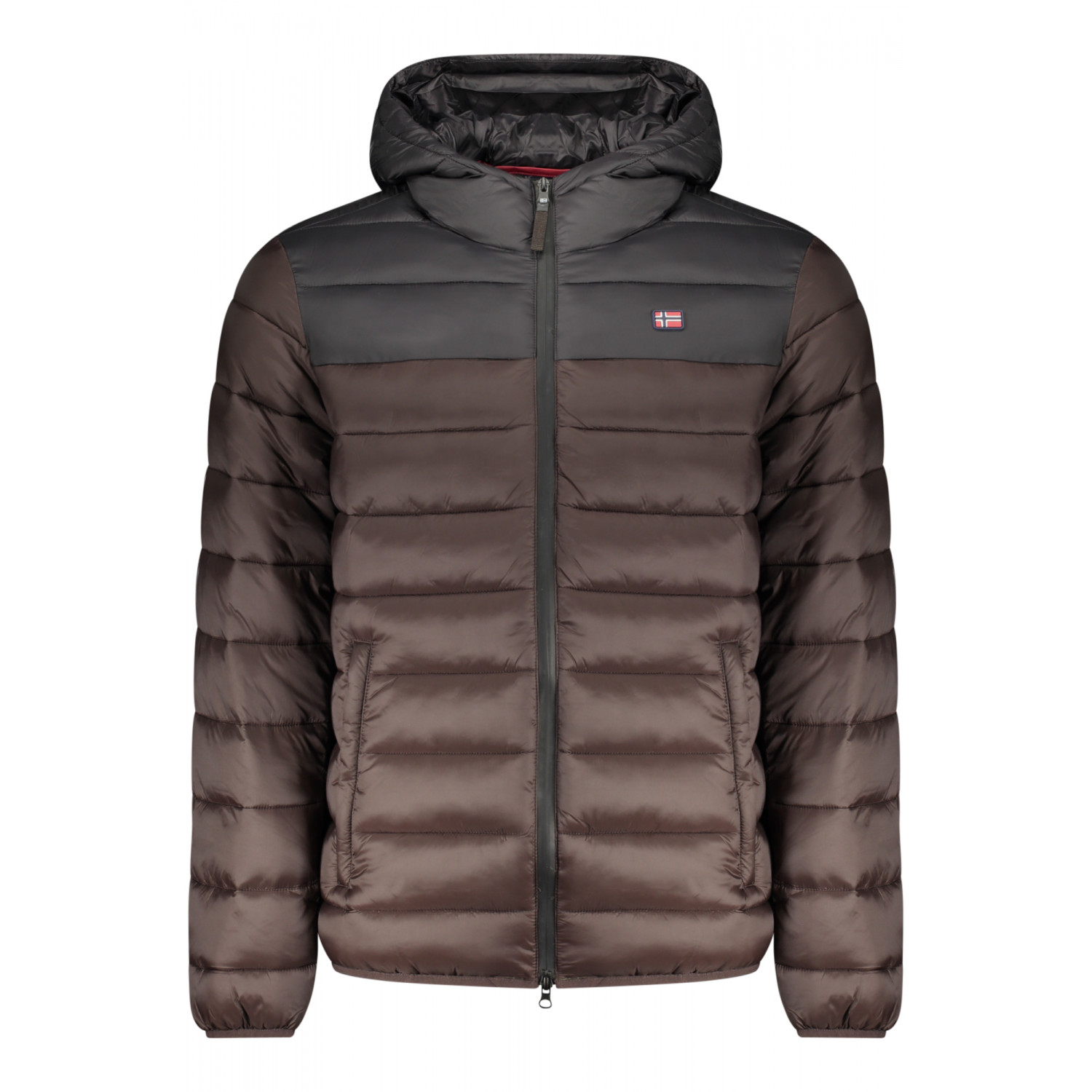 GIUBBOTTO MANICHE LUNGHE CON CAPPUCCIO, 2 TASCHE ESTERNE, 2 TASCHE INTERNE, DETTAGLI A CONTRASTO, ZIP, APPLICAZIONE, LOGO