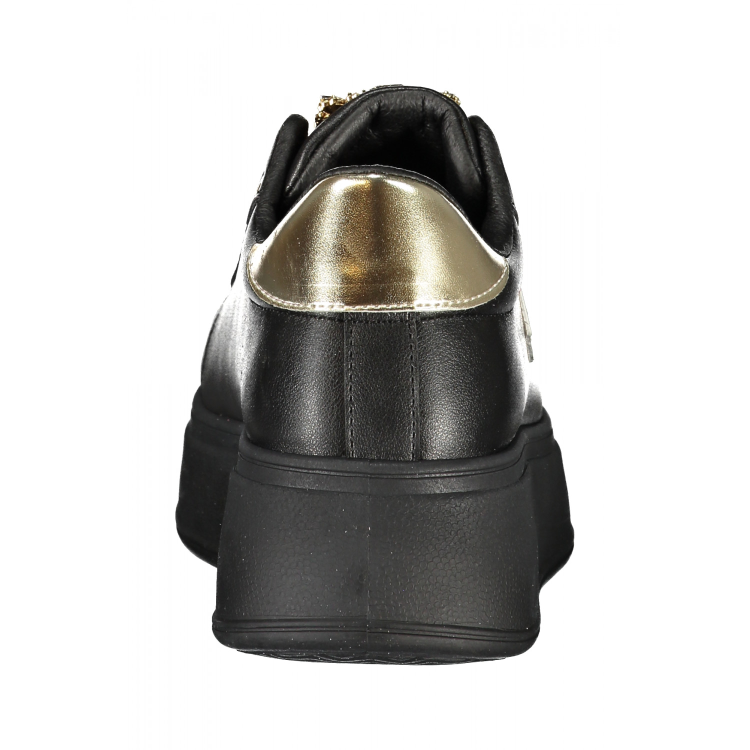CALZATURA SPORTIVA CON LACCI, DETTAGLI A CONTRASTO IN ORO, APPLICAZIONE STRASS, PLATEAU 5 CM, LOGO